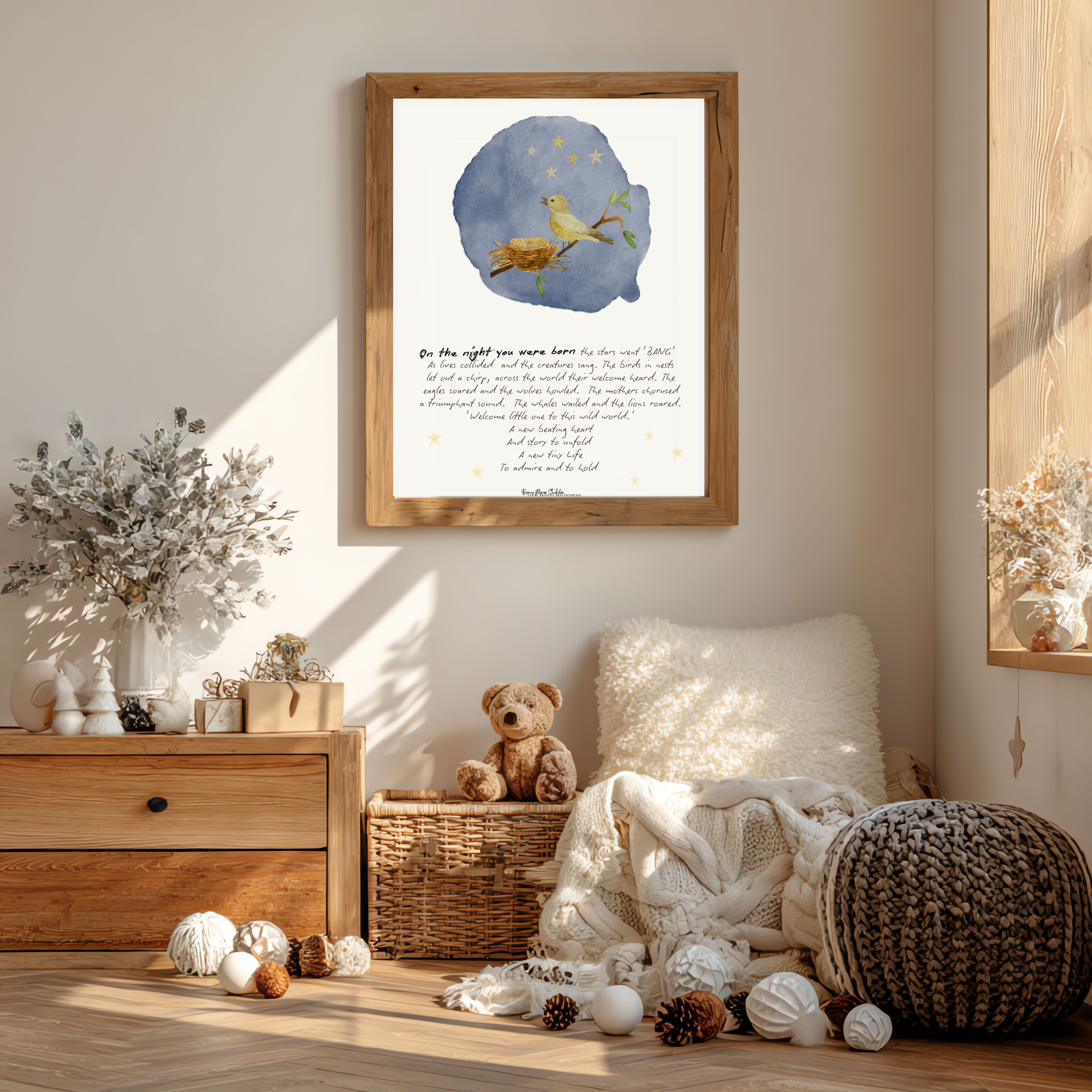 Welcome to Her ‘Wild Whispers’ — a collection of poetry art prints for children’s bedrooms and play spaces, pairing original poems with hand-painted illustrations. Each piece is created to be framed, displayed on the wall, and read aloud to children, nurturing self-confidence, imagination, and a sense of adventure.